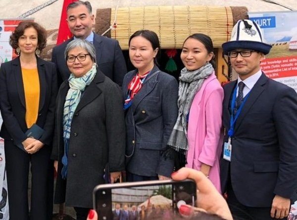 Презентация прошла в целях популяризации культурного наследия Кыргызстана. На проходящей с 12 по 27 ноября текущего года 40-й сессии Генеральной конференции ЮНЕСКО в Париже, делегация Кыргызстана в целях популяризации культурного наследия страны в штаб-квартире ЮНЕСКО установили и презентовали кыргызскую юрту. Об этом сообщило информагентство Vesti.kg. На мероприятии гендиректор ЮНЕСКО Одре Азуле выразила благодарность делегации Кыргызстана за предоставленную возможность презентации широкой публике элементов, внесённых в список ЮНЕСКО по нематериальному культурному наследию человечества. ― Подобные мероприятия должны постоянно проводиться в стенах штаб-квартиры ЮНЕСКО — Организации, ответственной за продвижение и сохранение культурного наследия человечества, ― отметила гендиректор ЮНЕСКО. Участников и гостей мероприятия ознакомили с юртой и её внутренним убранством. Среди ознакомленных гостей присутствовали президент Таджикистана Эмомали Рахмон, вице-премьер-министр Узбекистана А