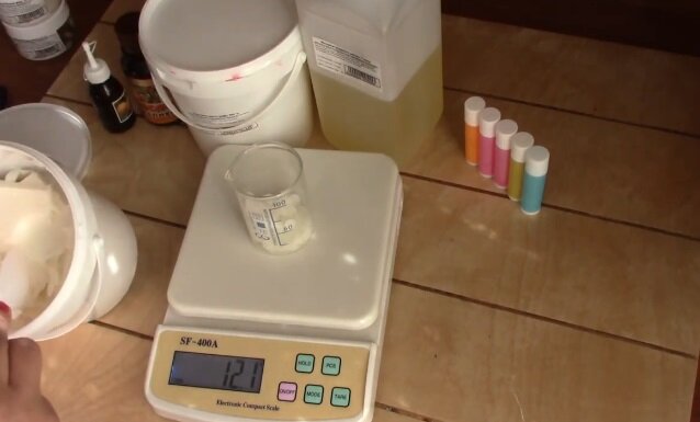 Берем примерно поровну воска (10 грамм), по 5 грамм твёрдых масел и