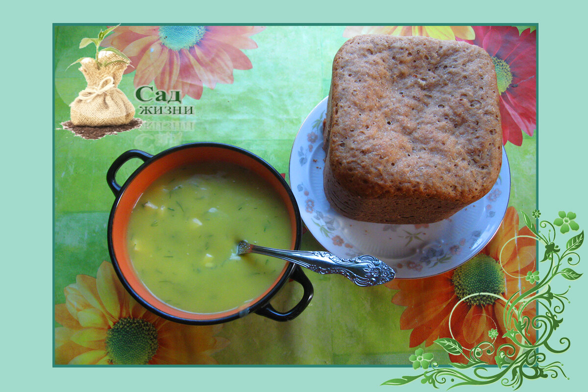 14. Все, суп-пюре готов! К супу можно сделать гренки из батона, очень вкусно. А, если у вас есть хлебопечь, то свежеиспеченный хлеб - лучшая добавка к супу-пюре.