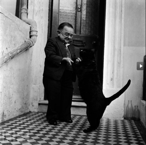 Caмый маленький человек мира в 1956 г. Генрих Беренс, танцует с котом.