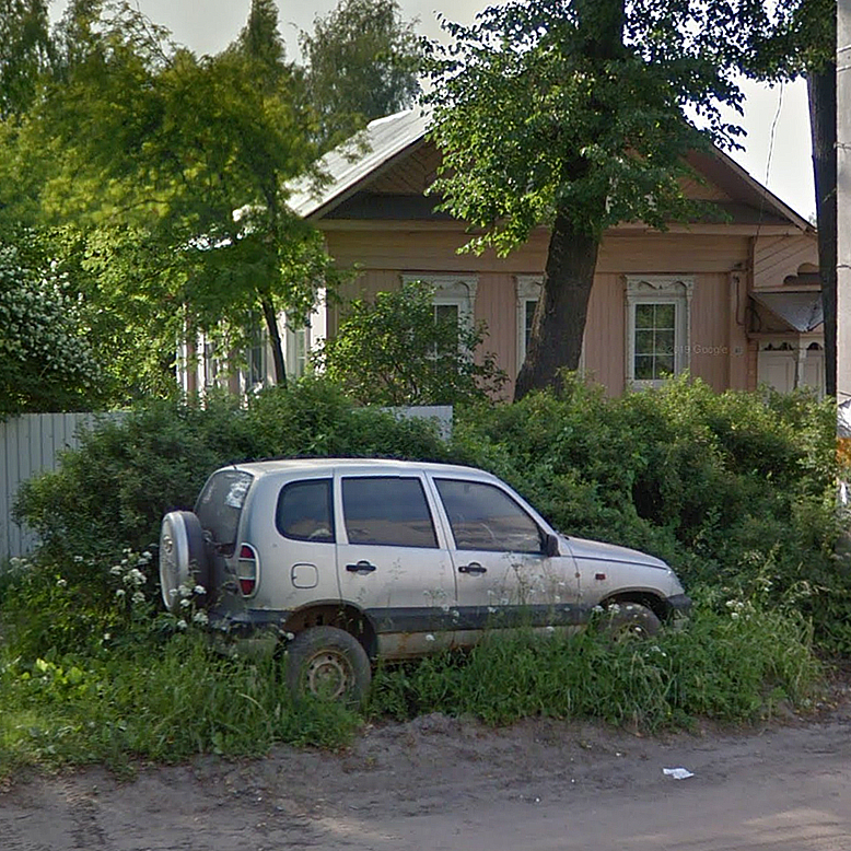 Возможно вы зададитесь вопросом, почему я зацепился за эту Шеви Ниву на Гуглокартах, и что же в ней такого редкого и удивительного? Да ничего. Просто её забавно поедают кусты. А так, это обычная дорестайлинговая Шнива, которая выпускалась до 2009 года.