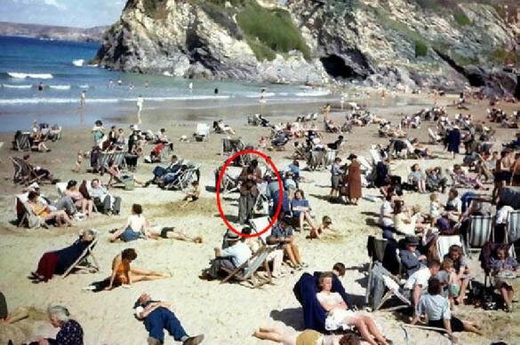 Житель Великобритании Стюарт Хамфрис поделился в Twitter снимком 1943 года. Он попросил пользователей социальной сети помочь ему найти пляж, запечатленный на фотографии. Стюарт Хамфрис занимается колоризацией и реставрацией старых фотографий. Закончив очередной заказ, он выложил результат в социальную сеть, чтобы узнать у пользователей, что за пляж изображен на снимке. Пользователи, однако, помогать в этом британскому фоторедактору не стали. Все дело в том, что их вниманием завладело кое-что другое. Дело в том, что среди многочисленных посетителей пляжа они увидели загадочного мужчину. Тот, несмотря на, судя по всему, жаркую погоду, одет достаточно тепло, в отличие от остальных людей поблизости. Но это не самое удивительно. Мужчина смотрит на свои сложенные перед самым лицом руки так, будто у него там самый настоящий современный смартфон. Именно такую догадку выдвинул один из посетителей страницы Стюарта Хамфриса в Twitter. Многие мистификатора поддержали. Любопытно, что сам фоторед
