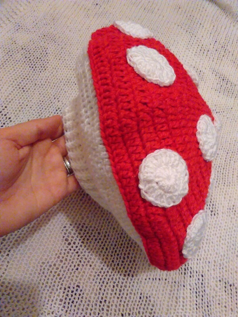Детская шапочка-грибочек для театрального представления Родители, чьим деткам посчастливилось посещать детский садик, уже привыкли к постоянным поделкам и шитью костюмов для театральных представлений любимых чад. Что делать, если ваш ребенок в новой постановке играет роль грибочка? Как вариант, можно связать крючком шапочку-грибочек, гладя на которую, было бы ясно, что ребенок никто иной, как мухомор. Но почему именно мухомор? Потому что расцветка этого гриба бросается в глаза и такая шляпка не оставит сомнения в том, кого именно играет дочка или сыночек. Для вязания шапочки нам понадобятся: Итак, приступаем. Формируем красной ниточкой кольцо из 3 воздушных петель (вп) и вывязываем в нем 12 столбиков с 1 накидом (с1н). Второй ряд состоит из 24 с1н. Для этого в 1 столбик предыдущего ряда нужно связать 2 с1н. Так количество увеличится вдвое. Далее увеличение столбиков производится через одну петлю – одинарный и двойной столбик по очереди. В третьем ряду получается 36 столбиков. В чет