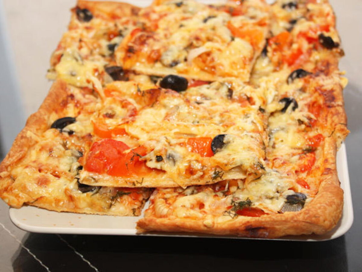 Хочу предложить вам весьма необычную начинку для пиццы. Честно говоря, первый раз я приготовила "из того, что было в холодильнике", но мне так понравилось, что теперь готовлю так постоянно, особенно в сезон кабачков, которые я обожаю))) Для начинки нам понадобится: Кабачок - 400гр. Сыр фета - 50гр. Томатная паста - 2ст.л. Колбаса - 100гр. (для тех кто следит за фигурой, можно и без колбасы) Помидор - 1шт. Сыр твердый - 100гр. Для основы, чаще всего, я использую слоеное безздрожевое тесто, но можно приготовить и своё, а так же взять и готовую основу для пиццы. Пласт теста я раскатываю по размеру притивеня, поэтому и ингридиентов я беру на целый противень. Смотрите сами. Теперь готовим начинку. Кабачок режем и тушим на сковородке, я иногда добавляю чуть чуть воды, чтобы получилось почти пюре. Туда же добавляем фету, мелко нарезаную и колбаску. Солим по вкусу, а так же можно добавить любимые специи. Готовую начинку выкладываем на тесто ровным слоем. Режем помидор на кусочки и расклад