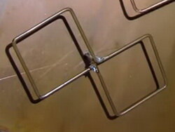 Затем, следуя схеме, согните проволоку особым образом, чтобы получилось два квадрата со сторонами в 30,5 миллиметров. Постарайтесь сделать это максимально точно. Один из концов проволоки нужно отогнуть под 90 градусов к плоскости антенны, чтобы получилось крепление.