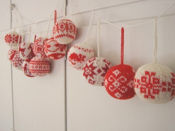 Елочные шары. Такие елочные шарики можно связать спицами или крючком. По схемам ниже можно связать шарики или вышить крестиком. А можно не заморачиваться и сделать шарик похожий на клубок ниток. Колокольчики. Свяжите такие основы для колокольчиков и украсьте их вышивкой, бисером, пайетками, кружевом и разными ленточками. И у вас получатся уникальные елочные игрушки. К украшению колокольчиков можно подключить детей. Схема: оставить длинный кончик для сшивания, 30вп.