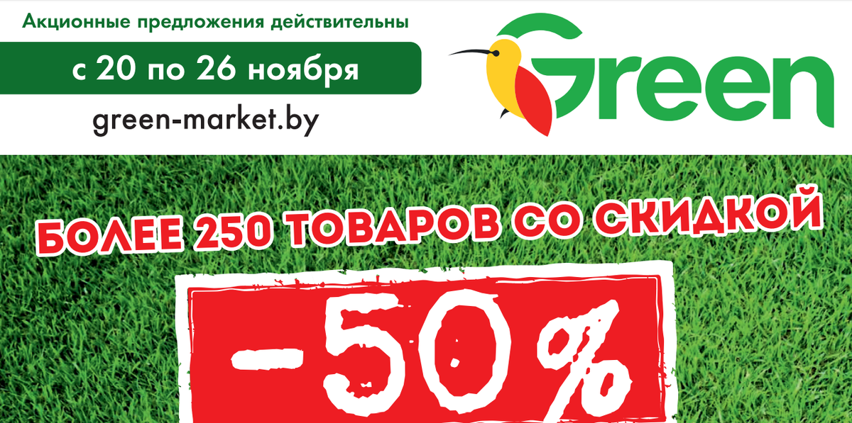 В магазинах «Грин (Green)» с 20 ноября 2019 г. акция - Скидки 50% в Green