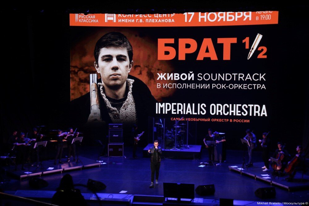 "Святые" 90-е - разгул преступности, все торгуют всем, государства практически не существует, но, в то же время царит полная свобода слова и мысли. В 1997 году Алексей Балабанов снимает культовый фильм "Брат", который вознёс на вершину звёздного Олимпа Сергея Бодрова, а группа "Наутилус Помпилиус" с Вячеславом Бутусовым с основным саундреком к этому фильму становится легендарной. И вот рок-оркестр "Imperialis Orchestra" вернул нас туда, в эпоху криминала и бесшабашной молодости, исполнив песни из фильмов "Брат" и "Брат-2" в Конгресс-центре им.Плеханова