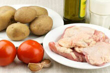 Необходимые ингредиенты для запеканки из курицы и картофеля: Около 1 кг. куриного мяса 5-6 шт. крупной картошки 2 шт. помидоров 100 грамм кефира 1/2 ч. ложки чёрного молотого перца 3-4 ч. ложки смеси сухих трав 2 зубчика чеснока 1 ч. ложка соли 2 ст. ложки оливкового масла. Прежде чем приступить к приготовлению, правильнее будет подготовить все необходимые продукты и хорошенько промыть курицу и поделить на умеренно большие куски. Выложить в глубокую посуду, залить свежим кефиром, посыпать часть пряностей для курицы, поперчить и посолить. Всё перемешать и оставить мариноваться на 30 минут. Тем временем займёмся картофелем: следует очистить их, промыть и поделить средними дольками. Добавить оставшуюся часть пряностей, обязательно посолить, полить оливковым маслом и перемешать. Далее нарезать промытые помидоры одинаковыми кольцами и на дно жаропрочной формы для запекания сначала ровным слоем выложить картофель, а затем сверху разложить уже помидоры. По прошествии 30 минут с момента марин