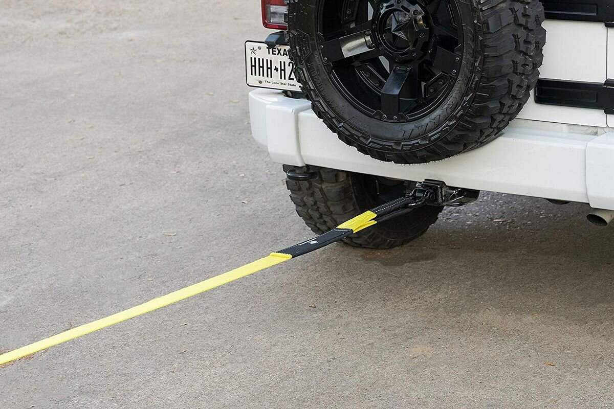 Считается, что буксировать машину рывковым тросом нельзя. На самом деле, это допустимо, но не очень удобно из-за его растяжения — контролировать провисание троса довольно трудно. Если длина позволяет, для буксирования лучше сложить рывковый трос вдвое, чтобы убрать лишнюю эластичность.