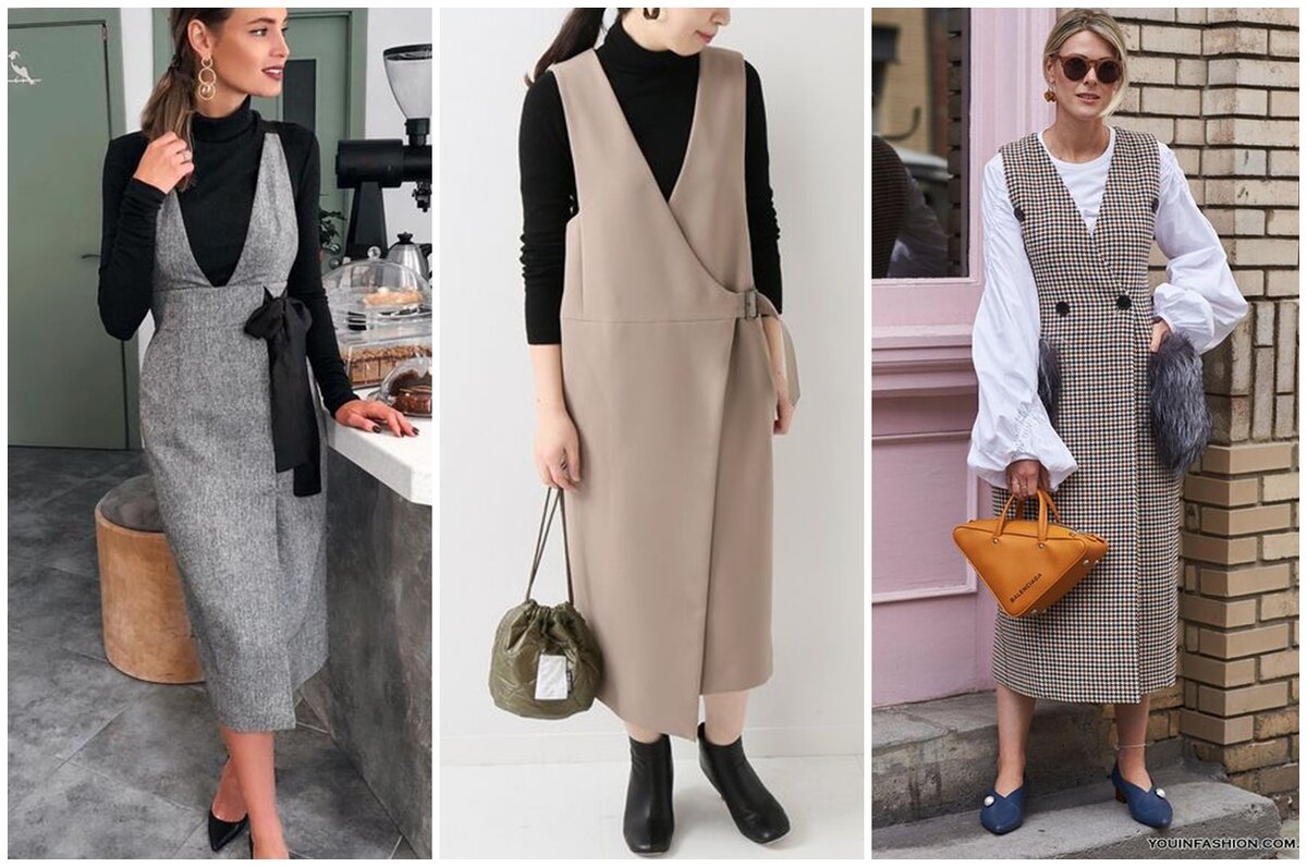 Приготовила для вас подборку из 5 самых актуальных платьев зимнего сезона. Они одинаково хорошо подходят и для делового гардероба, и для повседневного. А при правильном подборе аксессуаров любое из этих платьев легко превратиться в вечернее. Так что 1-2 модели из этого списка точно обеспечат вас женственными образами на всю нашу долгую зиму. Если вам некогда следить за модными трендами, то подписывайтесь на мой канал, я расскажу всё, что важно знать о современной моде, чтобы выработать свой стиль! 1. Платья-сарафаны Начать хочу именно с них, потому что классическое платье-сарафан - универсальный трансформер для вашего стиля. Под него можно надеть водолазку, блузу или рубашку - и получить 3 совершенно разных по настроению образа. Лучше выбирать сарафан с широкой проймой рукава, чтобы под него помещался любой нижний слой без дискомфорта. При желании сделать акцент на талии выбирайте приталенные модели или с поясом. Кстати, длина не обязательно должна быть миди: неплохо смотрятся и м
