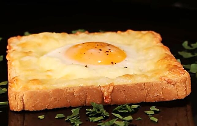 ● Сливочное масло - 1/2 чайная ложка Пошаговое приготовление: Надрезаем ломтик хлеба ножиком вглубь, не доходя до краёв кусочка хлеба около 1-2 см. Внутри кусочка хлеба, где надрезали кусочек, приминаем мякиш и делаем углубление в хлебе.Застилаем поднос бумагой для выпечки, смазываем сливочным маслом. Кладём ломтики хлеба на бумагу. Каждое окошко в хлебе заполняем яйцом. Во круг желтка посыпаем обильно тёртым сыром. Яйцо слегка солим и перчим. Отправляем яйца в духовку, разогретую до 180 градусов на 15 минут. Прошло 15 минут. Яйцо должно запечься, а сыр хорошо расплавится. Быстрый и вкусный завтрак готов. Вам понравился рецепт? Ставьте класс, делитесь с друзьями и подписывайтесь на мой канал. Вам несложно, а мне приятно, а я буду еще больше радо