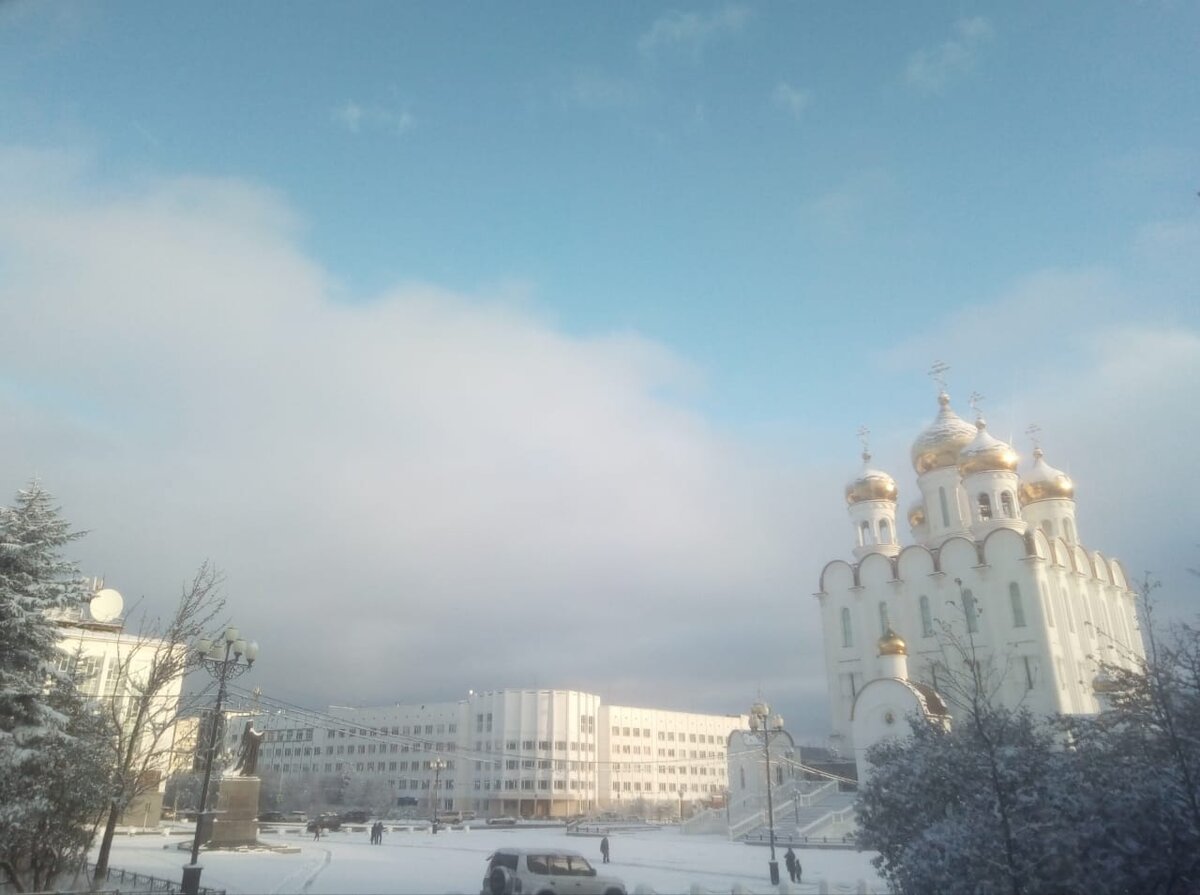 В Магадане не так много достопримечательностей, но все же они есть. И одной из таких является Троицкий собор. Его полное название "Собор Троицы Живоначальной - кафедральный собор Магаданской епархии Русской православной церкви. Храм-памятник жертвам политических репрессий" ⠀ Сложное название, правда? А то😜 это ж вам не просто храм. Он является вторым по величине на Дальнем востоке и одним из самых высоких в России. Его площадь с прилегающей территорией более 9 тыс. кв.м, а высота вместе с крестом - 71,2 м ⠀ Этот красивый собор, построенный в стиле древнерусской Владимирско - Новгородской архитектуры, виден в каждом конце города ⠀ Отношение жителей к этому памятнику неоднозначно. Дело в том, что место его постройки выбрано странное. С одной стороны с этой точки храм действительно просматривается отовсюду в городе. Но с другой стороны, на этом месте ранее стоял девятиэтажный долгострой, который должен был стать Домом Советов. Его металлический каркас, кстати, был взят за основу несущих