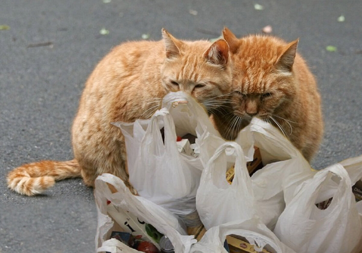 Жила у меня пара чудных котов. Тогда корм для кошек надо было доставать ,поэтому коты были всеядны.Как то приехали с мужем с рынка . Я с пакетами ,в которых были продукты зашла в дом а муж ,остался во дворе загонять машину .