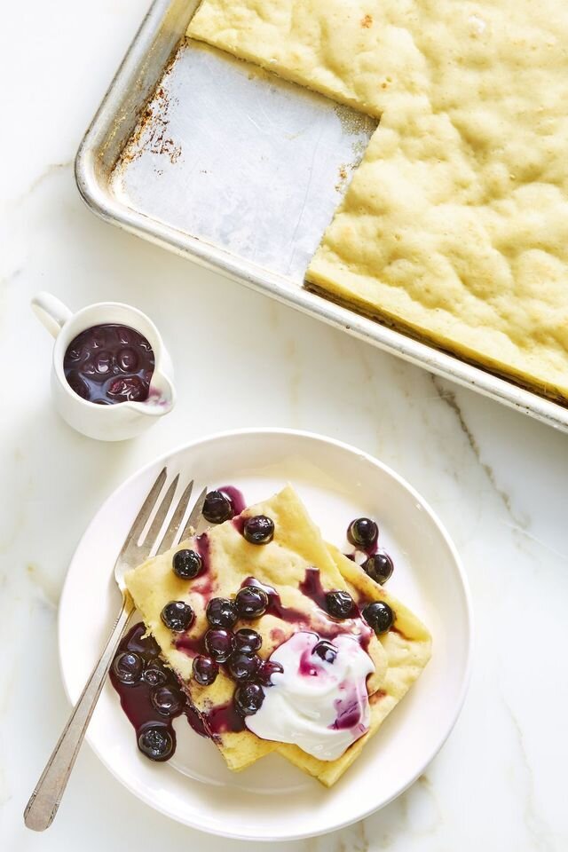 Приготовьте семейный торт- в одной сковороде! Для другого вкуса замените чернику на ежевику или нарезанную клубнику. КОЛИЧЕСТВО: 12 порций ОБЩЕЕ ВРЕМЯ: 0 часов 35 минут Состав продукта 1 стакана. черники 1 стакан. кленового сиропа 1/4 стакана. муки 2 ч. л. разрыхлителя 1/2 ч. л. соды 1 ч. л. соли 1/4 стакана. молочной сыворотки 2 больших яйца 1/4 ч. л. сахара 1 ст. л. мед 1 ч. л. чистый экстракт ванили 4 ст. л. несоленое сливочное масло Йогурт, для сервировки Приготовление: Нагрейте духовку до 270 ° С. Поставьте сковороду в духовку. В маленькой кастрюльке смешайте чернику с сиропом и варите на медленном огне до полного прогрева, около 5 минут; держите в тепле. В большой миске взбейте вместе муку, разрыхлитель, соду и соль. Во второй миске взбейте вместе сыворотку, яйца, сахар, мед и ваниль. Растопите 3 столовые ложки сливочного масла и взбейте вместе с смесью. Вылейте влажные ингредиенты на сухие и перемешайте так, чтобы не осталось следов муки (тесто будет комковатым). Осторожно вы