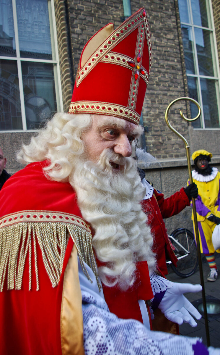 В прошлую субботу, 16 ноября, в Голландию приехал Санта Клаус (Синтаклаас). По легенде Санта приплывает на пароходе из Испании во второй половине ноября, чтобы подготовиться ко дню вручения подарков - 5 декабря (День Святого Николая). Но делает это он не один - у него есть множество помощников, Черных Питов (Zwarte Piet). Поскольку Санта один, а детей много, то Питы помогают привезти подарки из Испании, упаковать и доставить их на дом, через трубу. Поэтому они такие черные (одна из версий). А Синтаклаас решает кому подарки положены, а кому нет. У него есть большая красная книга, в которой написаны все поступки детей, и хорошие и плохие. Санта очень сдержан, в отличии от Питов, которые могут засунуть плохого ребенка в мешок и увезти в Испанию, в наказание. Но Синтаклаас слушается только родителей, поэтому дети должны все письма и пожелания передавать через них. С этим у моей знакомой голландки связан забавный случай. В ночь с 4 на 5 декабря она, как полагается, положила подарки для сына