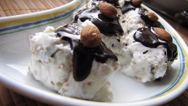 Ингредиенты: Приготовление: 1. Творог смешиваем с медом и сметаной. Если творог неоднородный, надо его сначала перетереть через сито. 2. Чернослив режем как можно мельче. 3. На пищевую пленку насыпаем ровным слоем кокосовую стружку и кунжут. 4. Сверху аккуратно порционно выкладываем творог и разравниваем с помощью ножа. 5. На творог раскладываем чернослив и изюм. 6. И, приподнимая один край пленки, сворачиваем все в рулет. Делается это очень легко! 7. Ставим наш рулет на 30-40 минут в холодильник. 8. Перед подачей на стол режем рулет на роллы, поливаем их растопленным шоколадом (растопить в микроволновке) и сверху украшаем орешком. Приятного аппетита! Готовьте с душой! Подписывайтесь на канал, ставьте лайки и пишите в комментариях свои впечатления. Читайте так же Салат "Березка"! 4 блюда которые понравятся взрослым и детям! Пирожное со сгущёнкой без хлопот! Простой пирог с лимоном! Печёночный праздничный торт