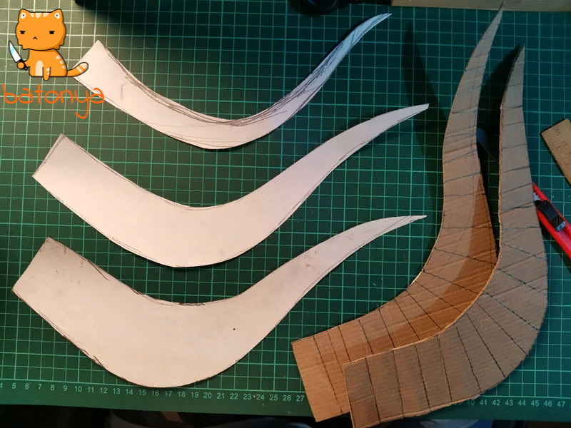 Сейчас я вам расскажу интересную историю того, как сделать рога и выкинуть их. А точнее, какие ошибки я допустила при создании рогов к Хэллоуину. Для этого нам понадобится: Самое простое в процессе создания, нарисовать на бумаге образ будущих рогов, перенести их на картон, используя, карандаш, линейку и канцелярский нож! Значит, берем кружку, наливаем чай, не забываем про конфетки и садимся мастерить. Так как рога это объемная конструкция, начинаем создавать ребра в виде полукругов. Для этого понадобится смекалка, картон и клей пистолет. Осторожно! Клей пистолет при нагревании может попасть на одежду и на кожу, будьте внимательны, так как ожоги на руках проходят долго и болезненно. Я сразу вырезала много круглых заготовок, потом просто разрезала их на половинки, ширину регулировала на глаз (тут все персонально, кому какой толщины нужны рога). И осторожно, приклеивала половинки на основу, без эксцессов не обошлось, пальцы были в ожогах :( спасибо мазям в моей аптечке, процесс заживлен