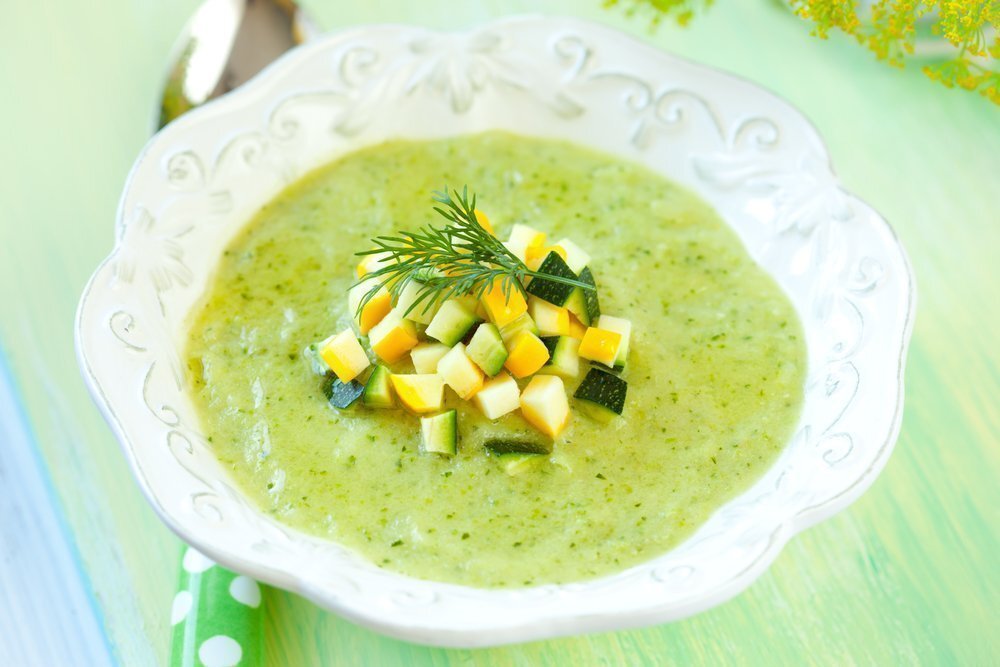 На 2 литра куриного бульона нам нужны: 1 небольшой кабачок, 2 картофелины, 1 морковь, 1 луковица, 100 грамм плавленного сыра, зелень, оливковое масло, соль и перец В кипящий бульон кладем очищенный и неразрезанный картофель. Отдельно на оливковом масле в течение 10 минут обжариваем мелко нарезанный лук и тертую морковь. Добавляем на сковороду мелко нарезанный кубиками кабачок, тушим ещё немного. Затем зажарку отправляем в бульон. Варим все овощи до готовности. В самом конце посыпаем бульон тертым плавленным сыром, перемешивать, готовим еще 10 минут, чтобы с плотностью растворился. Солим, перчим, посыпаем готовый суп рубленой зеленью и сразу же подаем к столу. Приятного аппетита!