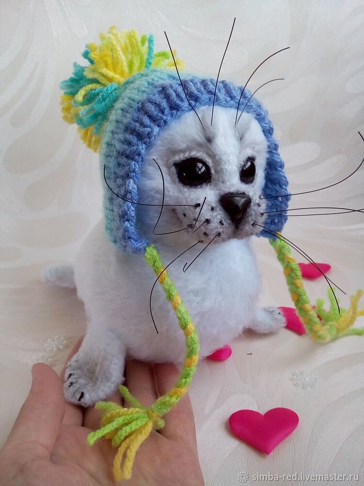 Нерпёнок Буся от Светланы Табунщиковой связан из той же пряжи, что и Снежок — Хлопок Травка от Камтекс. Рост Буси 16 сантиметров.