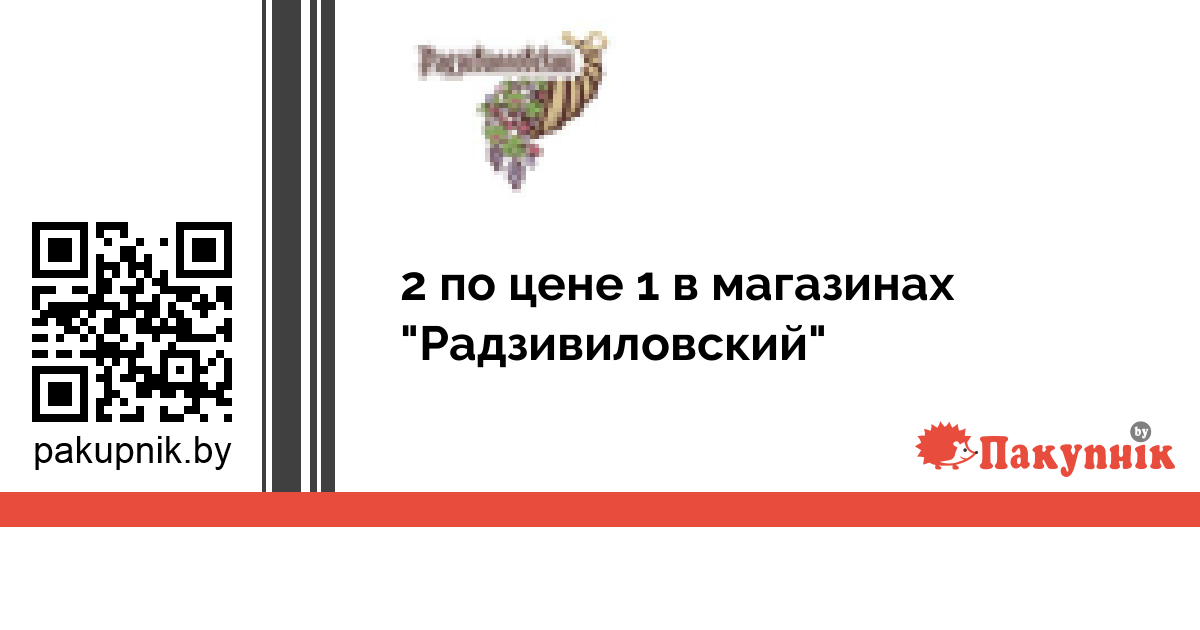 В магазинах «Радзивиловский» с 20 ноября 2019 г. акция - 2 по цене 1 ШОКОЛАД "PLAN В" МОЛОЧНЫЙ С ПЕЧЕНЬЕМ И КАРАМЕЛЬЮ 90 Г КОКТЕЙЛЬ МОЛОЧН. "ДАНИССИМО" СО ВК. ШОКОЛ. ЛАТТЕ 2,5% 215 Г ДЖЕМ "ЛЕСНЫЕ ЯГОДЫ", "МАЛИНА", "МАХЕЕВЪ" 300 Г СЫР ПЛАВЛЕНЫЙ КАРАТ "ЯНТАРЬ"/"ДРУЖБА" 45% 230 Г НЕКТАР "№1" ЯБЛОКО-ВИНОГРАД, ОСВЕТЛЕННЫЙ 1 Л. ЧАЙ ЧЕРНЫЙ "AHMAD TEA" КЛАССИЧЕСКИЙ ПАКЕТИР. 40*2 Г.