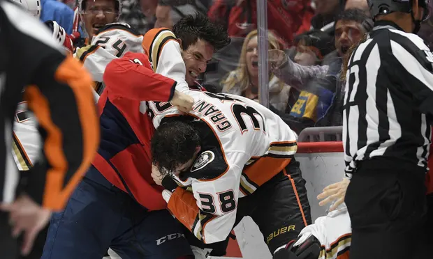 Но даже несмотря на то, что для среднего аутсайдера хоккейный бой может выглядеть как бессмысленное насилие на льду, есть еще некоторые линии, которые вы не пересекаете. И форвард "Вашингтон Кэпиталз" Гарнет Хэтэуэй перешагнул через один из них в понедельник вечером во время победы своей команды над "Анахайм Дакс". Второй период игры был причудливой и сердитой последовательностью, которая включала в себя гол Вашингтона, а также показала, что Хэтэуэй пригвоздил Дерека Гранта с парой прав, которые сбросили его противника на каток. И пока рефери пытались восстановить порядок и разделить дуэльные партии, Хэтэуэй принял удар от Эрика Гудбрансона и ответил экспресс-рассылкой комка слюны прямо в лицо защитнику "уток".
