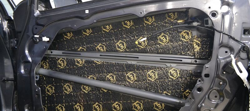 Хотите превратить свое авто в уголок покоя и тишины? Не забудьте про шумоизоляцию дверей! Она значительно снизит уровень шума и вибраций. Зачем нужна шумоизоляция дверей? Двери автомобиля имеют большую площадь, к тому же изготавливаются из довольно тонкого (в сравнении с кузовным) металла. Это делает их отличным проводником звука и вибраций. Металл резонирует из-за тряски, проезжающего мимо транспорта и потоков ветра. Он хорошо пропускает уличные шумы. Частично проблему решает заводская шумка. Однако она может обладать недостаточными вибро- и звукопоглощающими свойствами или вовсе отсутствовать. Хорошая шумоизоляция поможет и в том случае, если вы любите послушать музыку в машине. Зачастую, акустическая система дает сильные вибрации и дребезжание. Виды материалов Для данных работ применяются: Порядок шумоизоляции 1. Демонтаж пластиковых обшивок дверей. Обшивка снимается, после чего можно изучить штатную шумо- и виброизоляцию. Если вибропоглотитель не расслоился, не потрескался, надежно