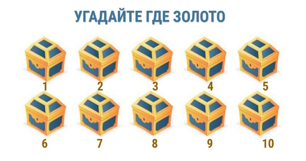 Интуицией, в большей или меньшей степени, обладает каждый человек. Кто-то научился пользоваться этим ценным даром, а кто-то упорно не обращает внимания на свой потенциал. Этот несложный тест на интуицию поможет точно определить, насколько у вас развита способность к предвидению. Как выполнять тест на интуицию в картинках Чтобы определить способности любого человека была разработана специальная методика. Для прохождения этого задания, на картинке изображено 10 шкатулок, в 3 из которых находятся драгоценности. Чтобы проверить свою интуицию вам нужно пару минут посмотреть на изображение, и выбрать 3 сундука, в которых, по вашему мнению, и находятся богатства. Не подсматривайте в ответы, и не пытайтесь предугадать результат. Просто доверьтесь своему шестому чувству, и сделайте выбор. Если вам понятно, как выполнять тест на интуицию в картинках, приступайте к его прохождению. Тест на интуицию с расшифровкой ответов Выбрав 3 шкатулки с драгоценностями, узнайте, сколько вы дали правильных о