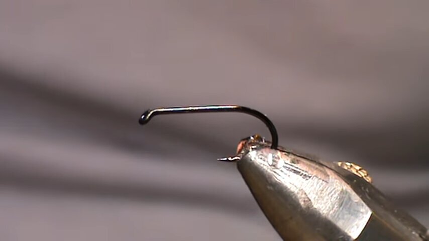 Крючок номер 10, длина 16 мм. Закрепляем чёрную нить на цевьё. Берём пучок ниток.