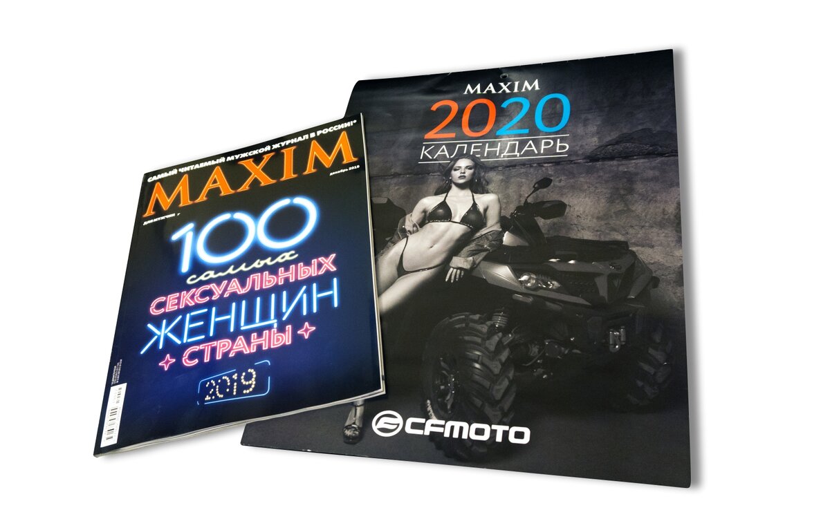 На этой неделе поступил в продажу зимний номер MAXIM c Подарочным календарем CFMOTO 2020! На этот раз календарь стал совместным проектом бренда CFMOTO и журнала MAXIM. Романтичные девушки-красавицы приняли участие в фотосъемке с квадроциклами и мотоциклами CFMOTO, чтобы радовать любителей техники со страниц календаря CFMOTO&MAXIM весь следующий год! Приобрести журнал MAXIM с Подарочным календарем CFMOTO 2020 c квадроциклами и девушками можно в точках продажи прессы.