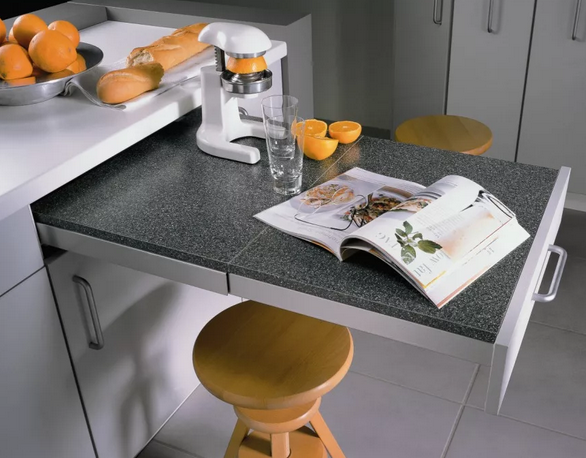 Здравствуйте, дорогие читатели и подписчики. В этой статье хочу представить вам интересные идеи, как можно обустроить даже на маленькой кухне полноценную столовую, которая так необходима для приёма пищи всей семье. Возможно в этой публикации вы найдёте наиболее подходящий для себя вариант, как организовать обеденную зону на маленькой кухне. Выдвижной стол Проблемы решать намного проще с помощью мобильной и функциональной конструкцией. Когда стационарный стол кажется непозволительной роскошью, тогда модель выдвижного стола значительно сэкономит место, а также вы получаете дополнительную рабочую зону, что для маленькой кухни очень важно. Барная стойка и дополнительное место для хранения Бытует такое мнение, что на маленькой кухне барная стойка не уместна и не предназначена. По моему это мнение является ошибочным. Смотрите, сейчас подобрать подходящую модель совсем не сложно:складную, передвижную, любой высоты и глубины, поэтому даже на самой крохотной кухне это вполне реально. Если вы я