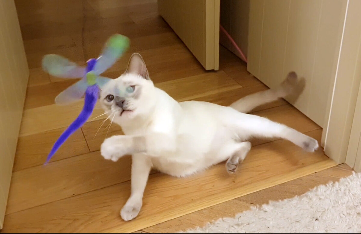 Но ему одному скучно, с ним же играть надо - махать ею, а я как назло не могу найти эту палку от стрекозы - наверное, выкинули. Попробую другую удочку уничтожить в пользу стрекозы. Правда вот, "за горло" привязанная - недолго она протянет, т.к. ворс, составляющий её туловище, сыпаться начинает, перетираясь, но хотя бы день себе выгадаю. А там может подвезут уж... Куплю сразу штук 10. Мало ли... :))