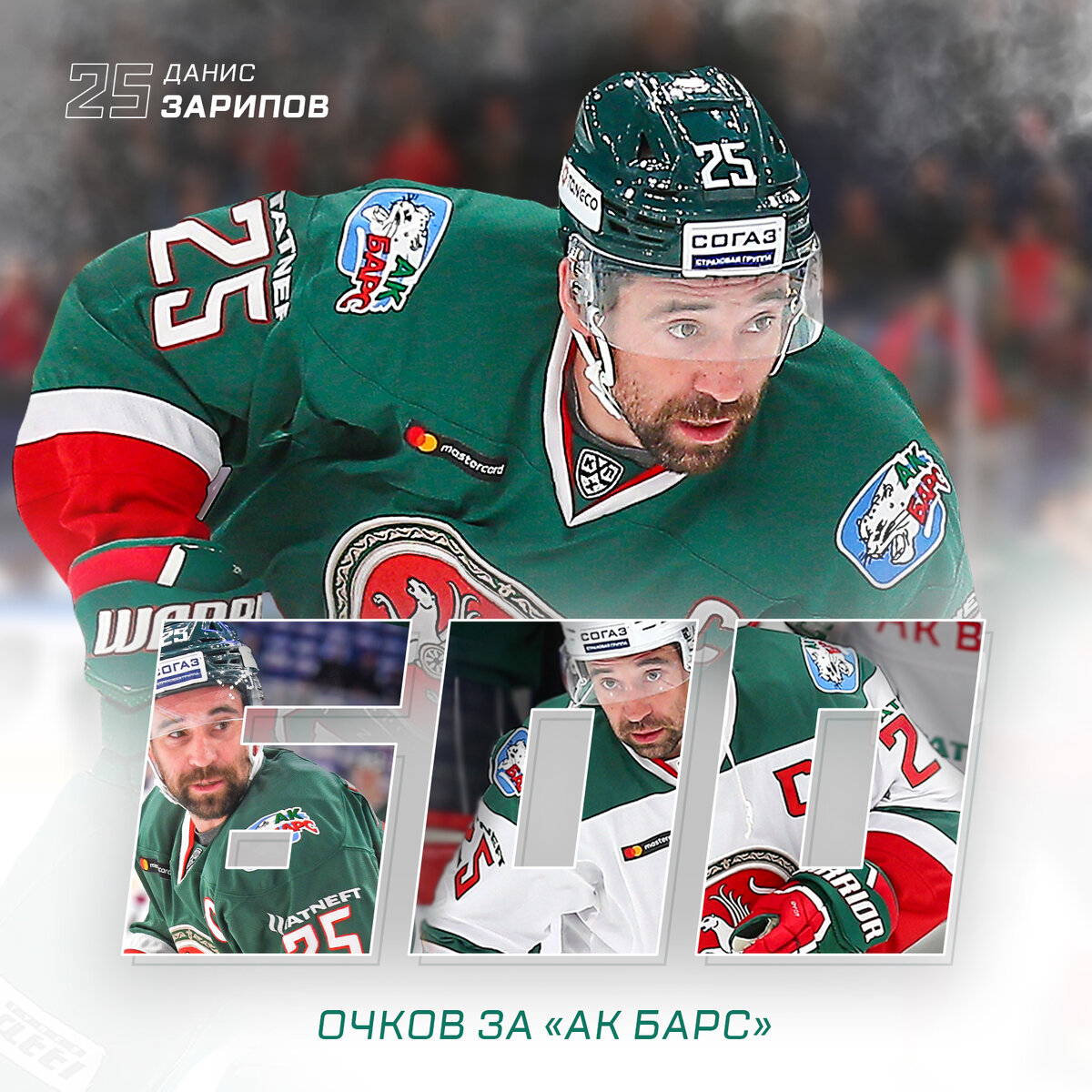 Капитан «Ак Барса» Данис Зарипов набрал 600 очков в составе «Ак Барса» − юбилейный балл за результативность форвард заработал в матче против «Сибири». Всего в составе «Ак Барса» Зарипов сыграл 708 матчей. Вместе с командой нападающий выиграл 3 Кубка Гагарина (2009, 2010, 2018), чемпионат России (2006), Кубок Европейских чемпионов (2007) и Континентальный Кубок (2008). Кроме того, Зарипов – лучший бомбардир и снайпер «Ак Барса» в КХЛ, а также рекордсмен по количеству матчей в чемпионатах России.