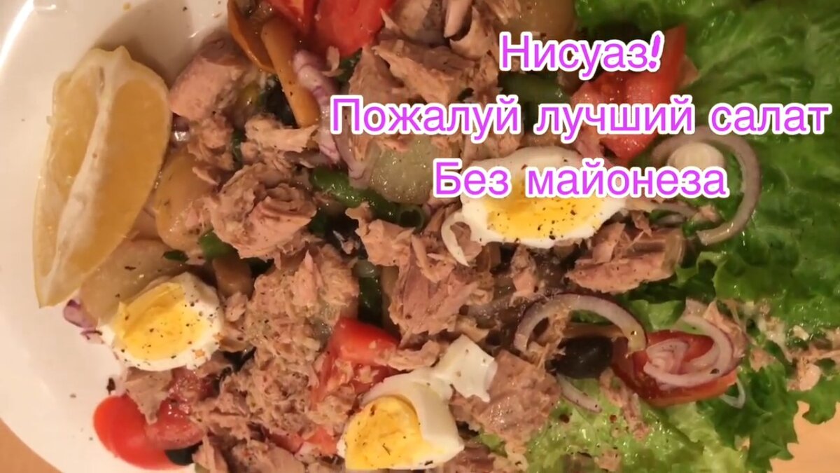 Классический салат с Лазурных берегов Франции! (с моим маленьким исправлением) по истине считается вкуснейшим салатом без майонеза! Ингредиенты только самые доступные! Приятного аппетита! состав: Тунец консервированный грибы маринованные( в классическом рецепте перцы) листья салата лук (лучше красный) фасоль ( можно мороженную) картофель (отварной) оливки (маслины) томаты соль, перец по вкусу заправка: чеснок, лимонный сок, оливковое масло, масло тунца(консервированного) Итак приступим Режем картошку мелкими полукругами, фасоль (если брали замороженную как я) порезана. Разогреваем сковородочку, и желательно на оливковом масле, так как салат у нас средиземноморский)) Высыпаем туда отваренный картофель и фасоль. Все это хорошенько обжариваем и добавляем соль по вкусу. Далее нарезаем лук мелкими полукольцами, дабы он здесь больше не для вкуса, а для украшения) После выкладываем на тарелку сначала салат, затем поджаренную картошку с фасолью, затем грибы и оливки. Затем на