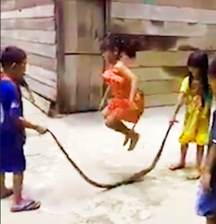 Каждый из нас наверняка любил во дворе попрыгать через скакалочку, пообжиматься с девочками, поскакать в классики, поиграть в вышибаллы или футбол, поподтягиваться на перилиах и прочее, прочее, прочее... У нас были ресурсы для этого, у наших родителей они были. Они могли купить нам скакалку или мяч, потому что наша страна достаточно обеспечена, по сравнению с другими, например африканскими странами. Думаю никто не будет с этим спорить. Мы можем пойти в магазин и запросто купить то, что нам нужно, но жители Вьетнама или Африки не могут позволить себе такой роскоши. НА что же им приходится идти, чтобы хоть как-то поразвлечь себя? Например, относительно недавно в сеть утекла видеозапись, на которой несколько детей из бедной африканской семьи вместо скакалки использовали труп настоящей гадюки. Это выглядит ужасно, если быть откровенным. Вот видео, на котором вы можете увидеть все своими глазами: Однако, у меня есть вопрос, был ли другой выход у маленьких мальчиков, которые просто хотели