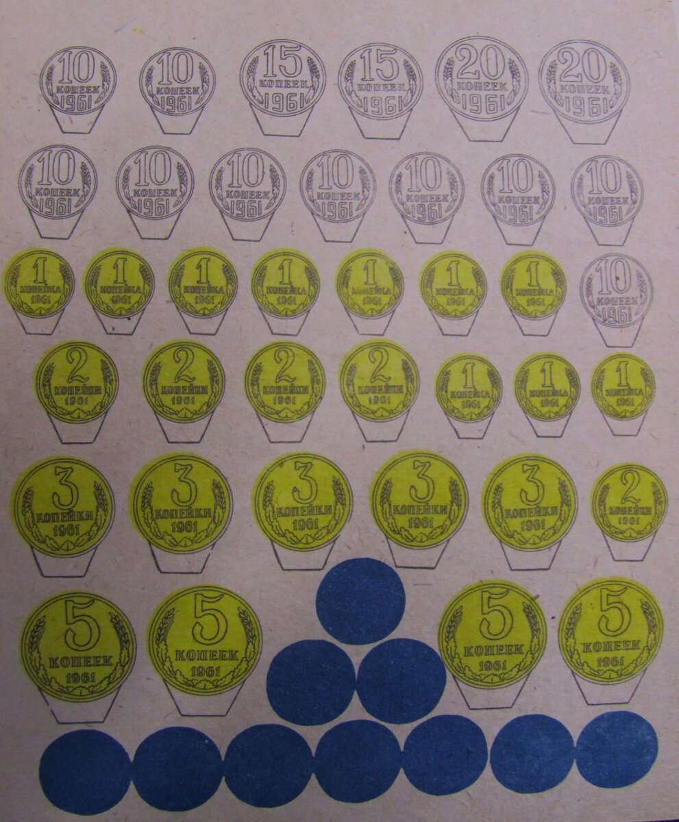 Бумажные монеты полагались первоклассникам. Для кассы цифр и счетного материала.