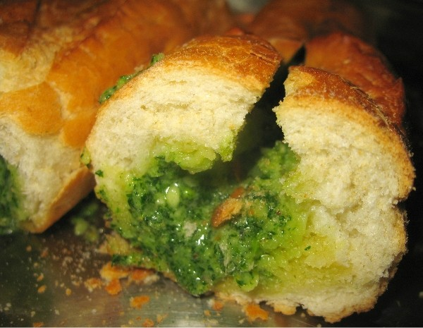 5. Готовить в духовке на 180 градусах примерно 10-15 мин до полного растопления масла и золотистой корочки Пропорции не пишу - все на глаз. Но по опыту скажу, что на полбатона уходит около 100 г. масла и 1 дольки чеснока. Если сразу есть не хотите - после 4 этапа заверните в фольгу и уберите в холодильник.