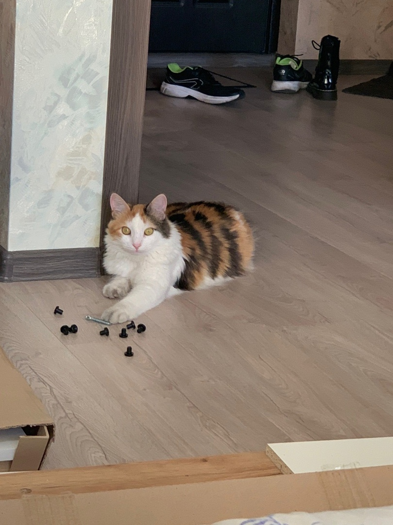 Сначала, войдя в коридор, мы увидели куча кусков от губки и испугались, что все остальное она съела, но зайдя в комнату поняли, что беспокоиться не стоит....