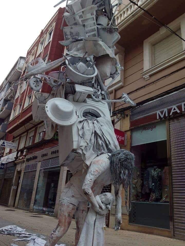 В Онтарио, что в Канаде, есть вот такой памятник мамам, под названием "Weight on mothers shoulders": Суть, исходя из того, что нависло над женщиной, предельно ясна: вся бытовуха в виде уборки, глажки, стирки и мойки - преимущественно на матерях. Поза и фигура же самой женщины недвусмысленно дает понять, что во всей композиции ее роль - страдающей, терпящей, этакой прислуги для дома и ребенка. Вот он, современный дуализм во всей красе - тут тебе и демократия и равноправие полов и цвета кожи с одной стороны, с другой же - бунт против исторического дореволюционного патриархата, провозглашавшего, что роль женщины сводится к трем K - киндер, кирхе, кюхе (если что то ребенок, церковь, кухня) :)