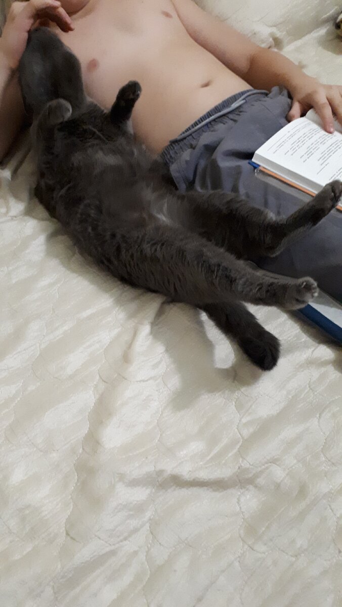 А удобных случаев мой драгоценный ребёнок предоставляет котам предостаточно. Потому что в отличие от меня он гораздо чаще, качественнее и длительнее лежит. Ну, вы же, разумеется, поняли, что эти мохнатые засранцы давным-давно забыли, что когда-то (миллион лет назад!) сидели и с тоской глядели в окно, ожидая меня из отпуска.