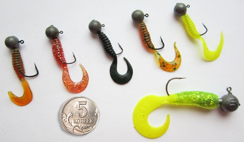 Силиконки могут быть и съедобные и обычные. Чаще всего используют мелкие твистеры, от 1” до 2.5”. Можно и другие виды силикона использовать, хоть пассивные слаги, хоть червяки, насаженные методом вэки, или обычным способом, за краюшек. Но, если используете пассивку, то придется больше дерганий, пульсаций придавать снасти, чем при ловле на меленькие виброхвосты или твистеры. Фишка гирлянды в том, чтобы использовать несколько разных цветов одновременно, и сравнивать результат, менять, экспериментировать, подбирать лучшие решения в данный конкретный момент. Кроме мелкого силикона, мне доводилось сталкиваться, что ловили окуня на гирлянду на стримеры из козьей шерсти. Так что, эксперименты в этой снасти можно выносить за пределы сферы применения силиконовых приманок.