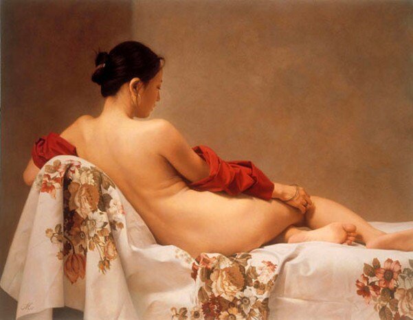 Немного о жизни: Жизнь художника была невероятно сложна. Родился он в 1937 году в Корее в семье известного японского художника Моримото Надайры. После начала Великой Войны в восточной азии эмигрировал в Японию. В 1943 снова вернулся на родину, а в 1945 вновь был депортирован в страну восходящего солнца. Во времена принудительных переселений семья потеряла практически всё имущество. До 1979 года Моримото писал натюрморты, пока не увидел в одном из художественных институтов процесс написания портрета с натуры. Это действо поразило его и вдохновило на создание серии своих собственных работ на данную тематику. О причине написания именно женских образов: "Я не испытываю влечения к мужчинам, не ощущаю того, что ощущая, глядя на женщину. Узрев истинную красоту, тронувшую моё сердце, я хочу увековечить её на холсте. Это не просто низменное влечение, это поклонение красоте, поклонение её силе. Я люблю женщину как воплощение природной красоты" Об использовании фотографии в своих работах: Я пишу