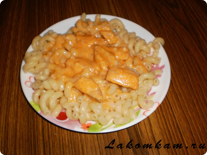 Подаём на стол с макаронами или картофельным пюре.