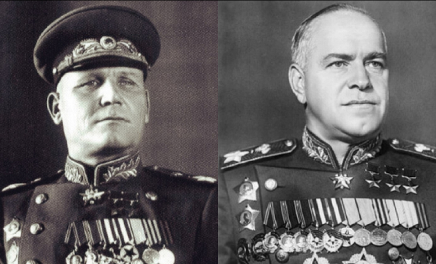 В Курском сражении Жуков координирует действия степного фронта,и этим фронтом командует Конев.За тем Жуков продумывает операцию по окружению противника,отходящего к Днепру,и опять среди наступающих армия Конева.Войска под командованием Жукова и Конева,обьединенными силами освобождают Варшаву,но,когда до победы осталось совсем немного,дружба боевых товарищей подверглась серьезному испытанию.Сталин получает донесение разведки,из которого он узнает о секретном плане Американцев занять Берлин первыми.Сталин немедленно телеграфирует Жукову:"Умирающий Рейх плетет паутину,чтобы вызвать разногласия между Русскими и союзниками.Эту паутину нужно разрубить,взять Берлин Советскими войсками,Рубите немцев".Такую же телеграмму получил и Конев.Сталин устроил своего рода соревнование ,кто первый войдет в Берлин.С другой стороны он сталкивал личные амбиции Жукова и Конева,разрушая их дружбу.Жуков отдает приказ своим войскам,любой ценой прорваться в Берлин,хотя бы на окраину и незамедлительно доложить Сталину.Когда жуков только отдавал приказ своим войскам взять Браденбург,Конев уже докладывал о взятии Браденбурга своими танкистами.В армии началась неразбериха,воцарил хаос,все перемешалось.Маршалы стали ругаться ,и каждый обвинял друг друга,что тот целенаправленно мешает ему вести наступление.Сталин был доволен,что получилось столкнуть двух друзей.Официально Сталин назначил Жукова -маршалом победы.Но конфликт между Жуковым и Коневым при взятии Берлина,неразрушил дружбы боевых товарищей.Они продолжают сообща работать над укреплением обороны страны.