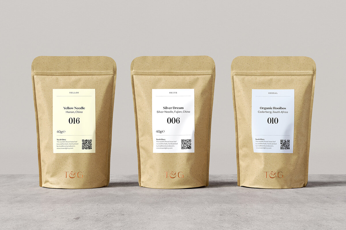 Opinion by Richard Baird. Tea & Glory are loose-leaf tea experts and are described as the antithesis of fast-paced coffee culture. In the same spirit of ancient tea drinking rituals, the brand is interested in the continued promotion of slow-living, a lifestyle that seeks to place more focus on the small details and experiences of everyday life. With a desire to better express this position Tea & Glory worked with London-based design studio Socio Design to develop a visual identity, packaging system and interior signage that connects retail and hospitality experience, and that materially projects their ethos outside of the T&G space. Assets included loose tea pouches and boxes, takeaway cups and shopping bags. These are linked by a T&G logo, Klim Type Foundry’s Domaine Display, Sans and Condensed, a pastel colour palette, copper block foiling and a delicate pattern. The Tea & Glory cafe, located in The London Borough of Camden, is characterised by its Scandinavian qualities in the lo