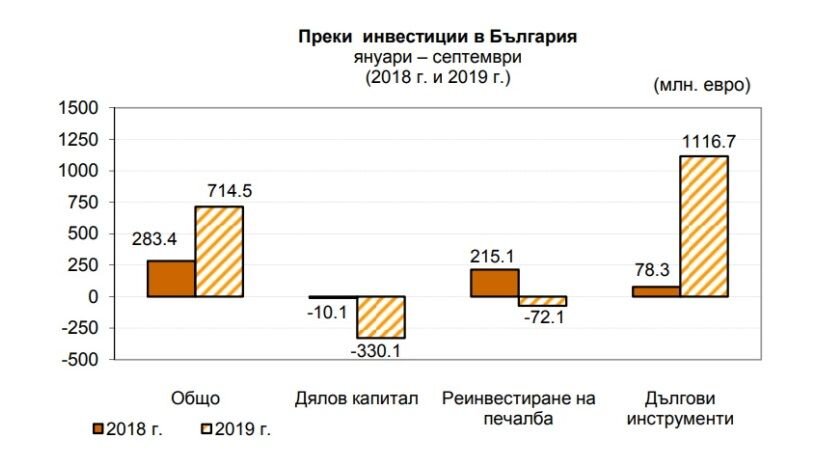 Прямые иностранные инвестиции в Болгарию за первые девять месяцев 2019 года составили 714.5 млн евро или 1.2% ВВП... Иностранные инвестиции в Болгарию растут