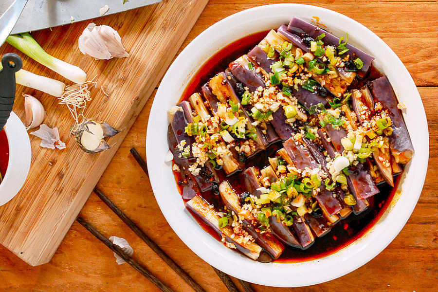 Ингредиенты: 450 г – баклажаны 4 зубчика – чеснока 1 стрелка – зеленого лука 50 г – белого рисового уксуса 3 ст.л – растительного масла соус 1 ч.л – темного рисового уксуса 2 ст.л – светлого соевого соуса 2 ч.л – устричного соуса 1-1 ½ ст.л – соуса Лао Гань Ма 1 ч.л – кунжутного масла ½ ч.л – сахара Приготовление: Приятного аппетита! Если вам понравилось, поставьте 👍, чтобы я мог понимать предпочтения участников канала и быть более полезным. Делитесь понравившимися рецептами с друзьями, нажав кнопку "Поделиться".