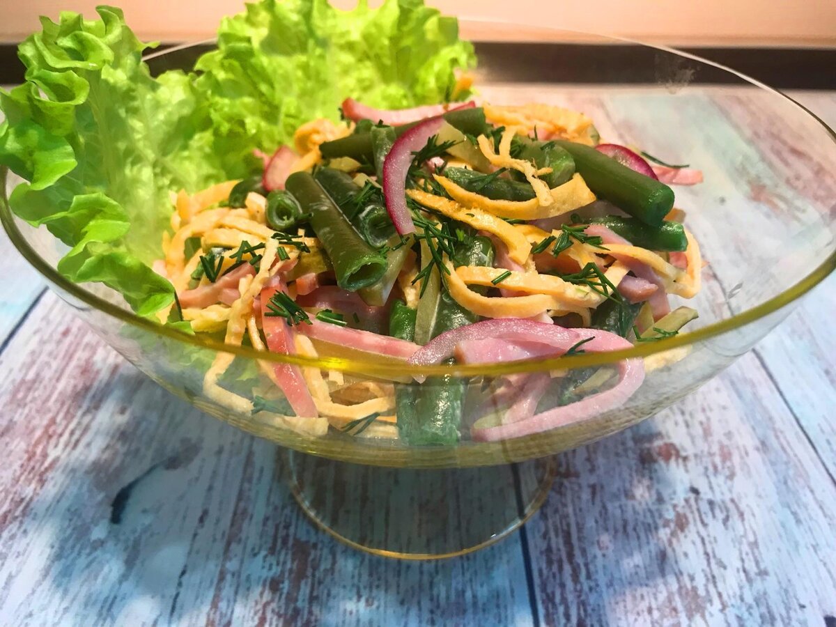 Салат с зеленой стручковой фасолью и ветчиной. Салат на новый год 2020