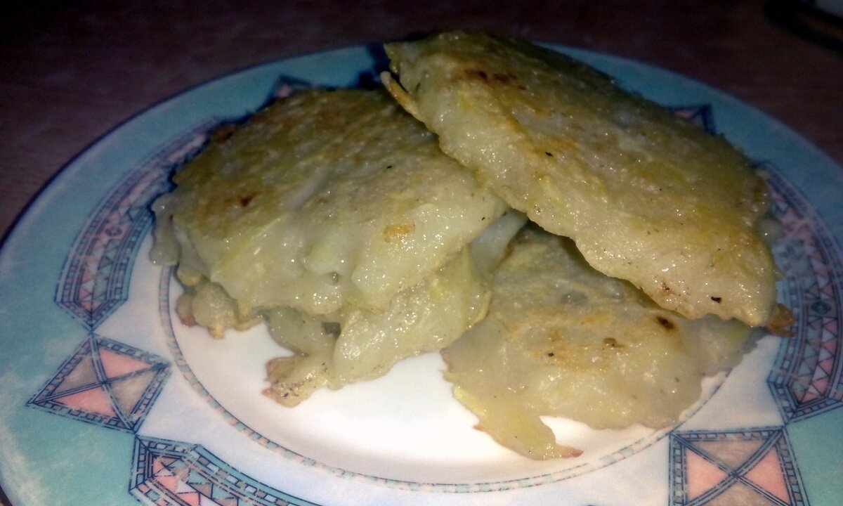 Доброго времени суток,дорогие друзья!Сегодня расскажу вам рецепт простого,вкусного и очень дешевого завтрака. Нам потребуется всего лишь лук,картофель,мука и вода. Сначала нарезаем лук перьями и обжариваем на сковороде на растительном масле до золотистого цвета. В это время трем на терке картошку и складываем в кастрюльку. Добавляем в нее лук,воду и постепенно муку,размешиваем до однородной консистенции.Нужна средняя густота,как на обычные оладья,что бы тесто накладывалось ложкой.Солим и перчим по вкусу,при желании хорошо подойдет молотый кориандр. Жарим на растительном масле,на среднем огне по 3-4 минуты с каждой стороны. Подавать оладья рекомендую со сметаной или майонезом. Приятного аппетита!!!