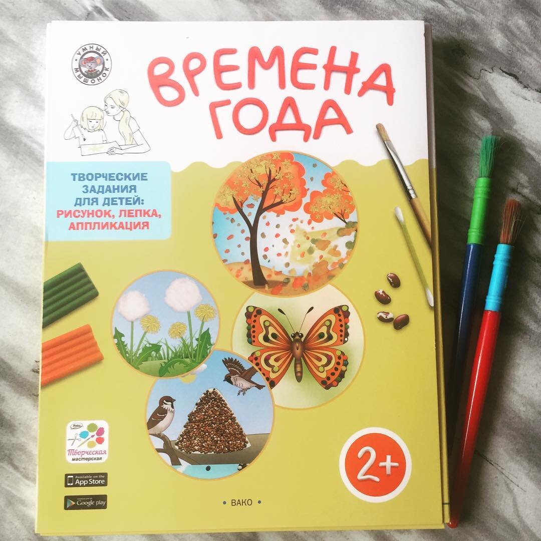 Отзыв на творческие папку и тетрадь "Времена года" Этот комплект для творческих занятий заслуживает все же отдельного поста, а не только упоминания в сторис. Комплект «Времена года» авторства Е.А. Ульевой включает в себя брошюру с методическими рекомендациями и 60 цветных листов с шаблонами заданий. На каждую пору года 15 заданий. Большинство заданий так или иначе связаны с рисованием, но используются различные техники (рисование кистью, губкой, пальчиком, палочкой), также аппликация и лепка. Есть варианты где в одном задании применяется сразу несколько техник. Все задания интересные, сопровождаются каждый рассказом, приводятся варианты вопросов для ребёнка, с целью развития речи и понимания процесса. А главное, не надо ничего изобретать! Все уже придумано и продумано с учётом возрастных возможностей! Ребёнку не сложно самому выполнять задания , они посильны и приносят удовольствие! А ещё у комплекта есть мобильное приложение, в котором к каждому заданию даны видеорекомендации. Такж